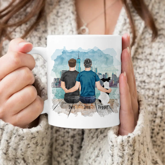 Personalisierte Tasse - 2 Männer + 1 Hund
