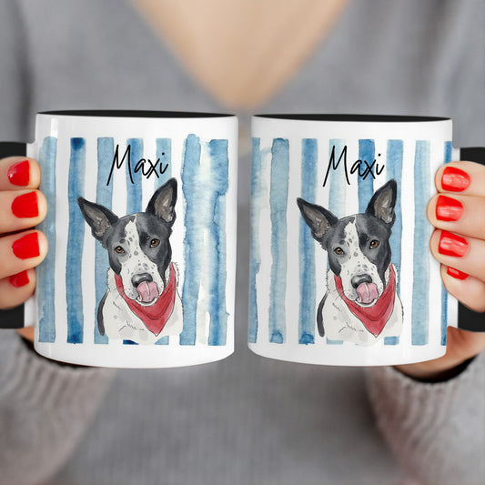 Personalisierte Tasse - Mit eigenem Hundebild im süßen Aquarell-Stil mit Namen